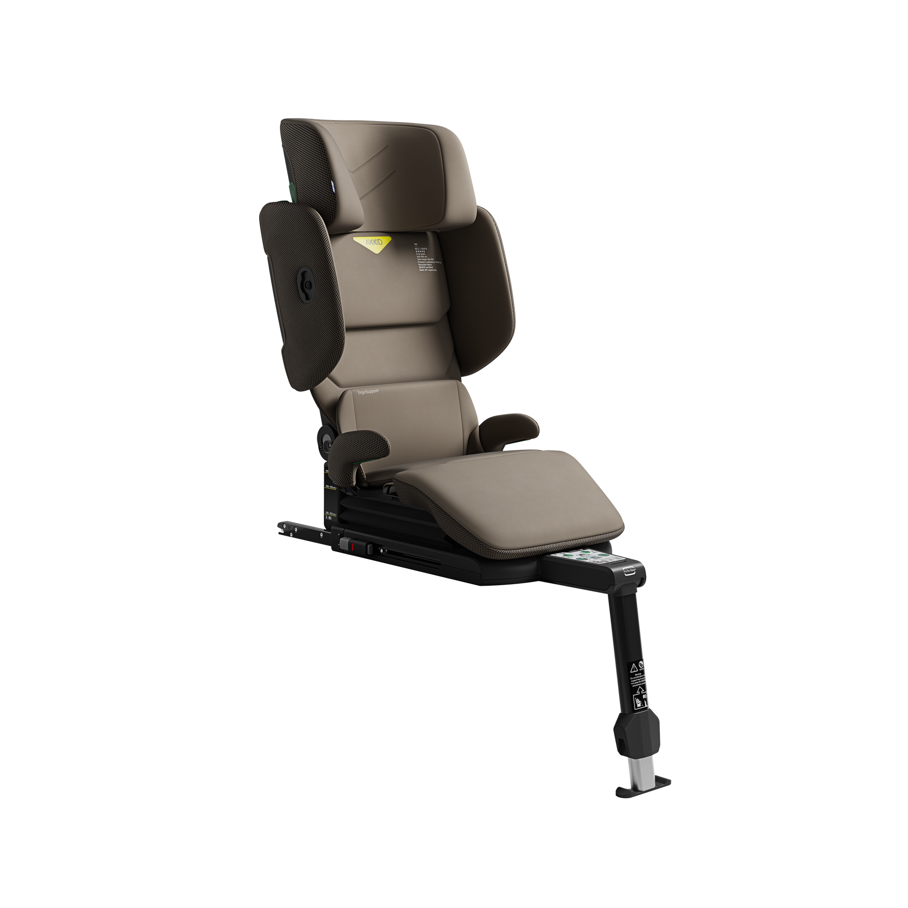 Axkid Up™is our most advanced high back booster seat ever. Fits children between 4 to 12 years old (100-150cm/50kg) and adapts to your child with the raisable seat, to ensure perfect belt position. Equipped with a solid steelframe with a built-in support leg for added stability
