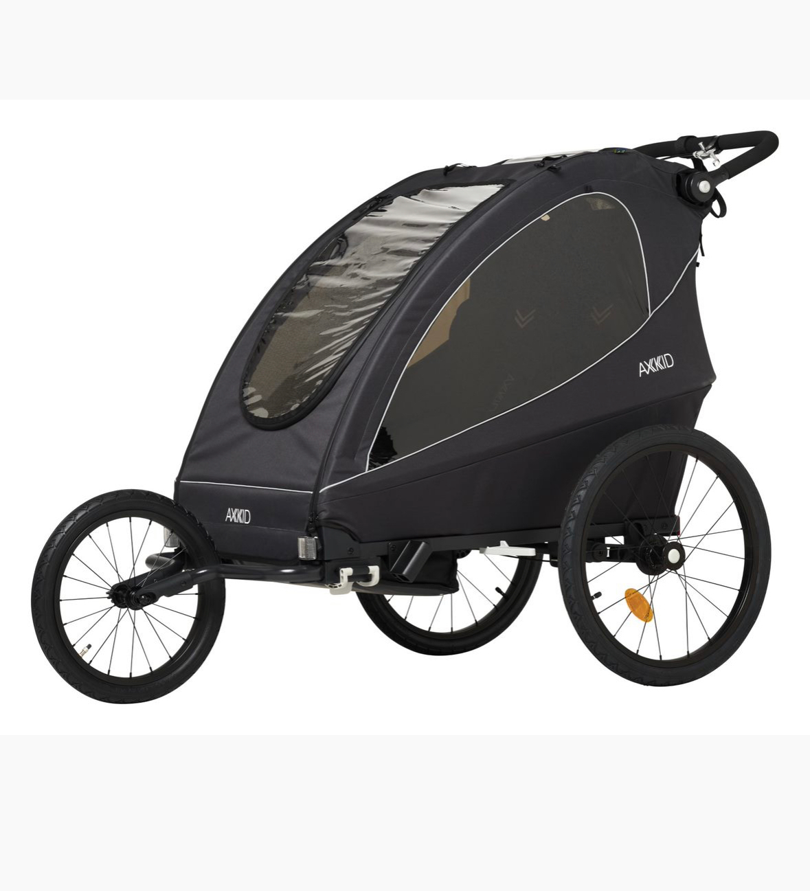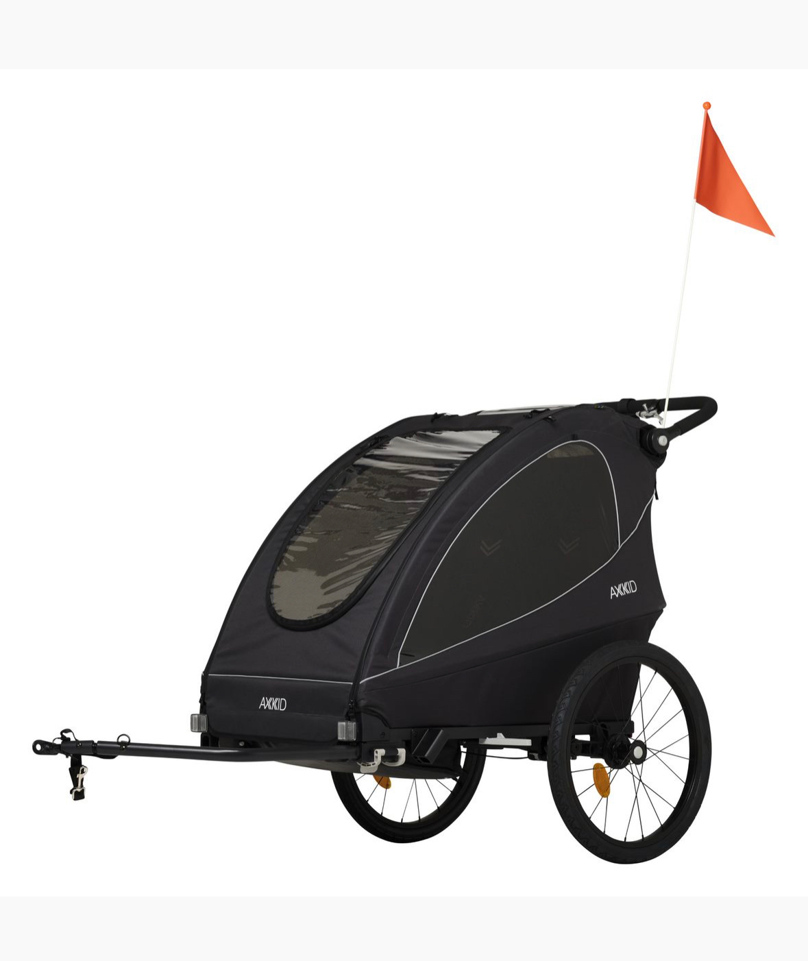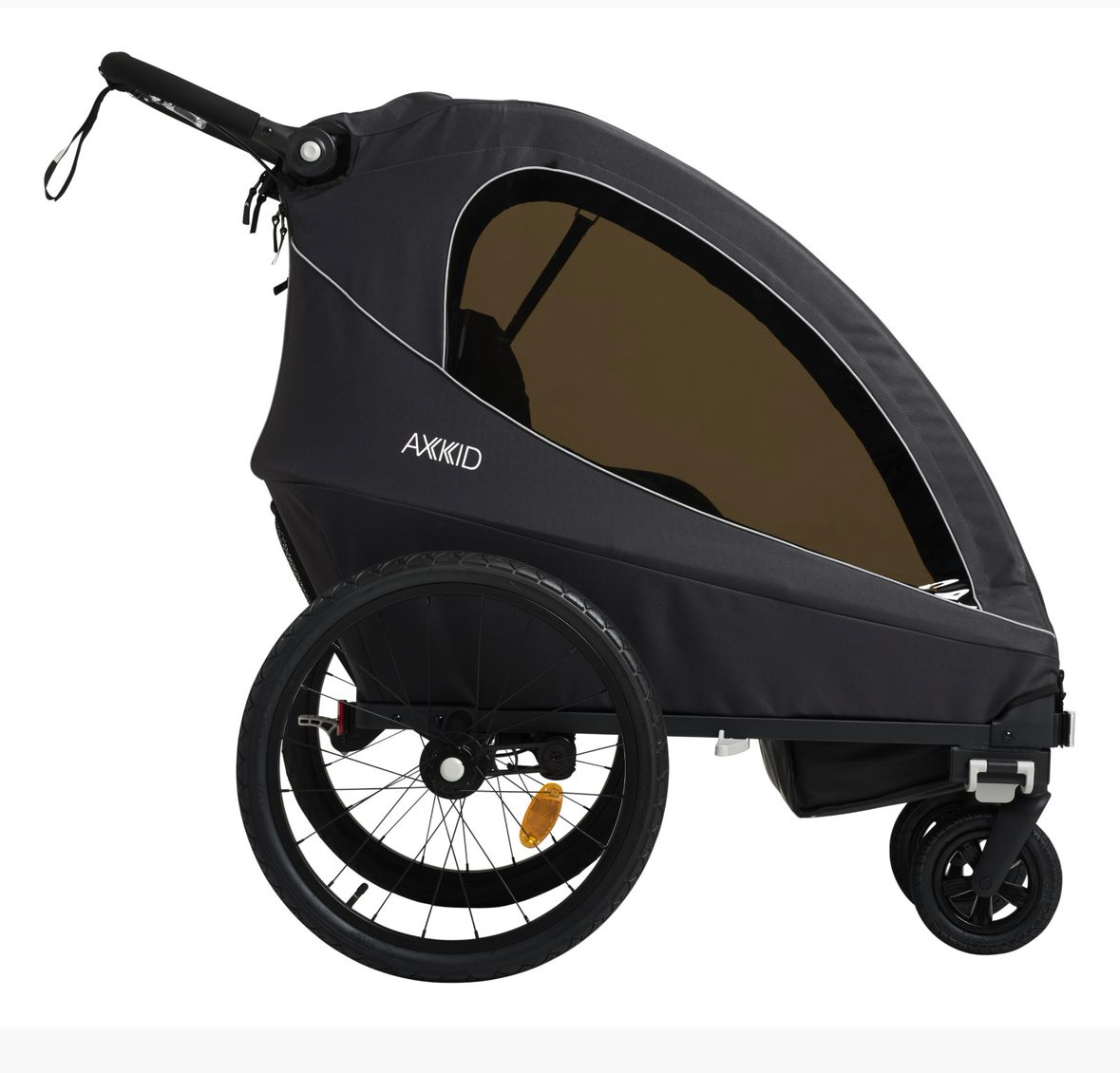 Additionally, the Axkid Grand Tour is equipped with a reliable parking brake, ensuring the trailer stays securely in place when parked, providing added stability and peace of mind.