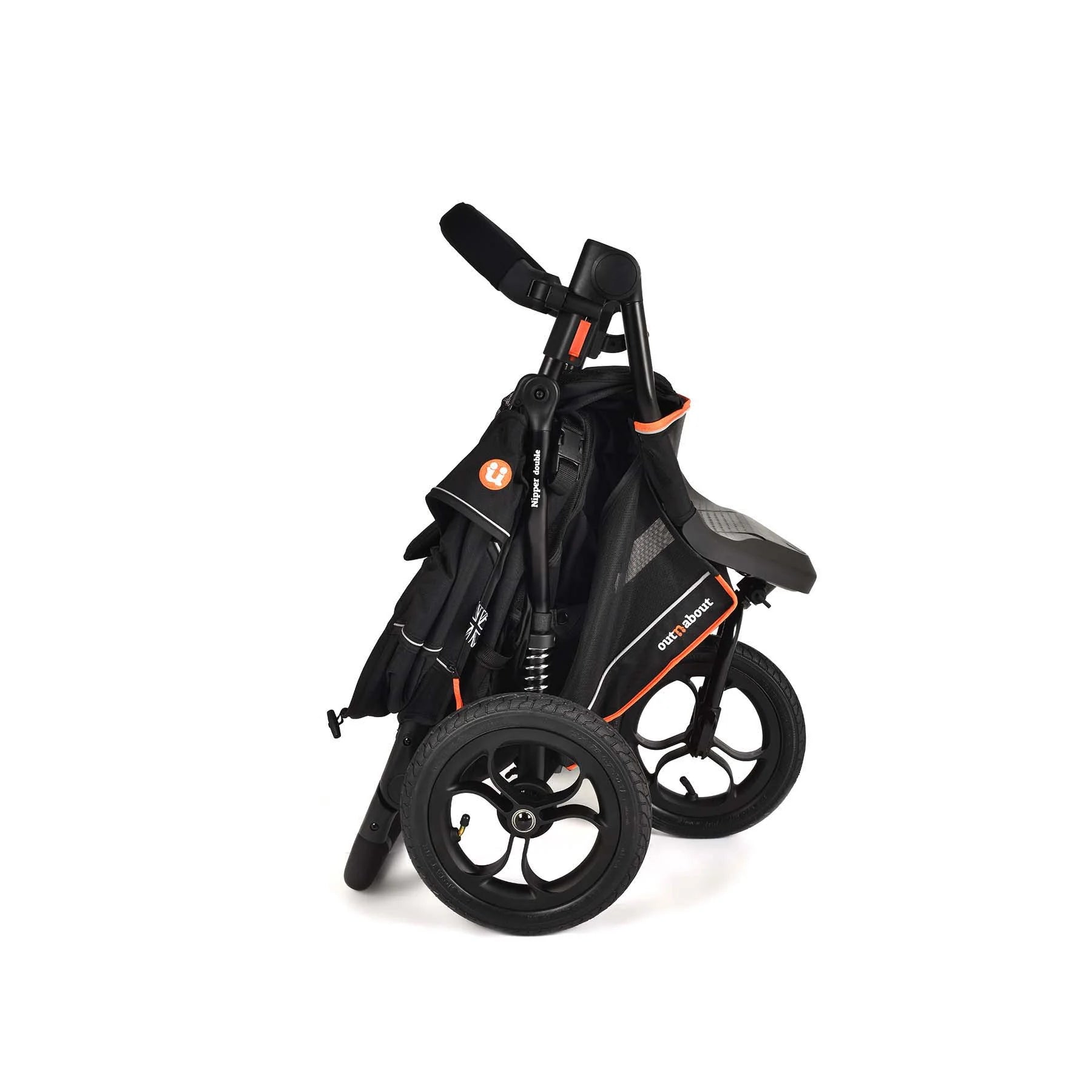 The Nipper Double V6 is our most advanced and versatile double pushchair to date – suitable from newborn to around 4 years old. Built with a durable design that’s made to last (and with access to spare parts when you need them), this all-terrain 3-wheel buggy has 12” air-filled tyres, rear suspension, a swivel-lock front wheel for stability on rough ground, and a lightweight aluminium frame that’s easy to handle. It seats two children (22kg capacity each) yet is just 71cm wide, so it fits through standard doorways with ease.